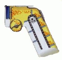 all'elevatore che preleva un campione di prodotto da misurare ogni 2 o 3 secondi in